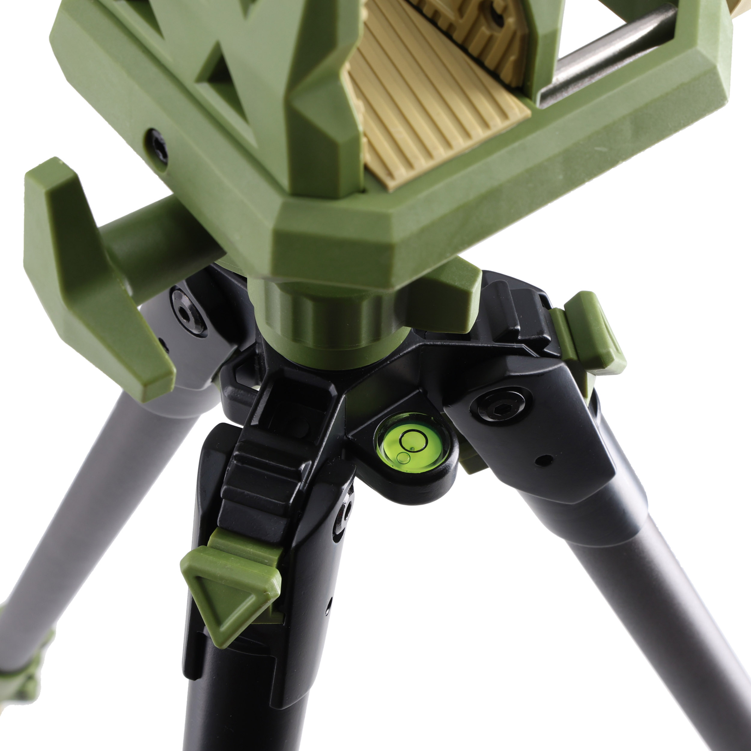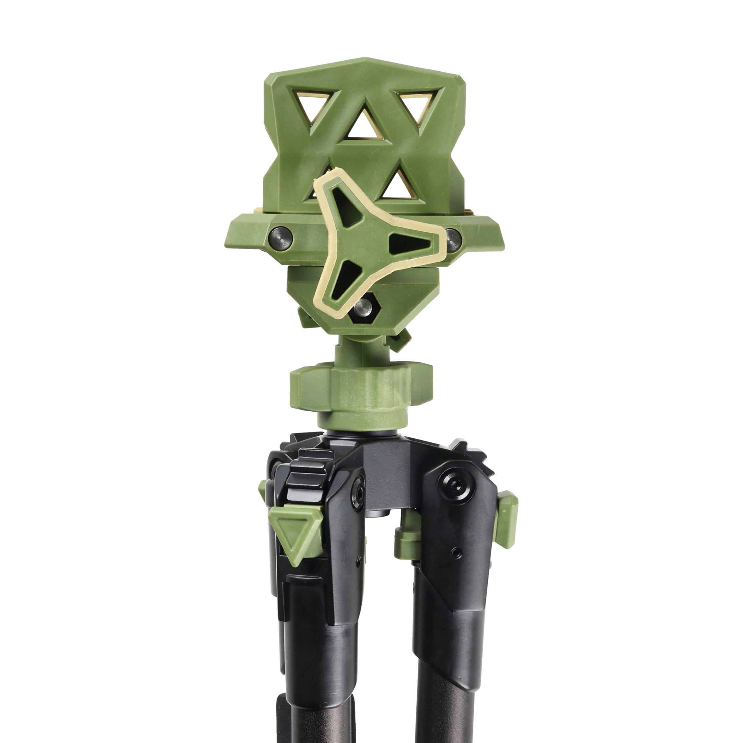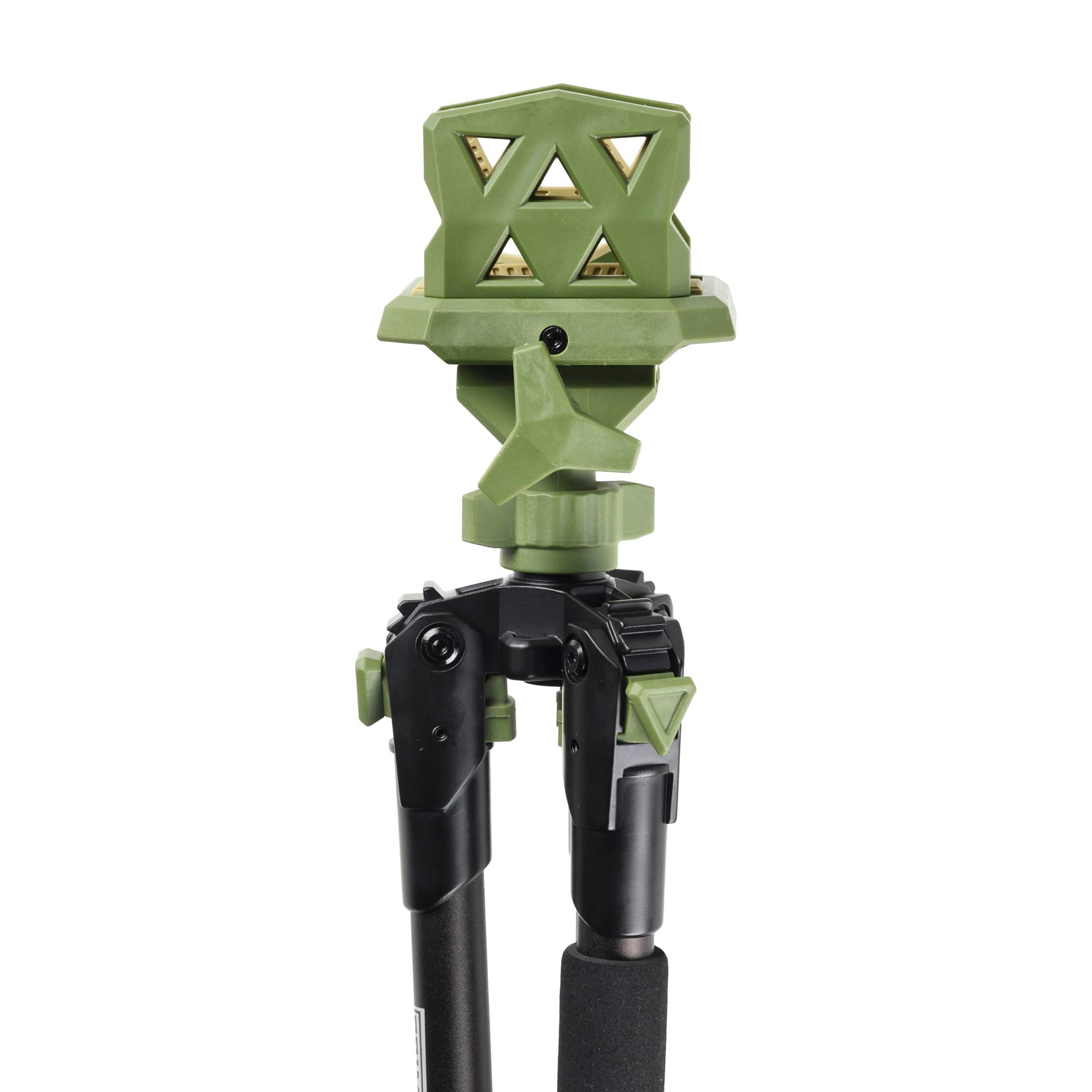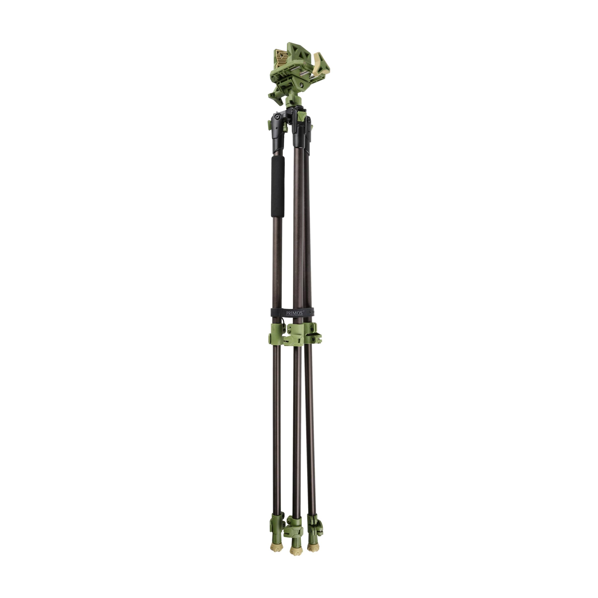 Głowicę trójnogu stanowi szeroki, regulowany uchwyt Magna Switch wyłożony od wewnątrz miękkimi gumowymi lamelkami. Takie rozwiązanie zapewnia solidne oparcie niezależnie od szerokości i kształtu osady broni. Co istotne, nie powoduje również żadnych odgnieceń lub zarysowań w przypadku osad drewnianych. Trójnogi marki Primos od lat cieszą się zasłużoną renomą wśród myśliwych, za praktyczne rozwiązania i dużą niezawodność w warunkach terenowych.