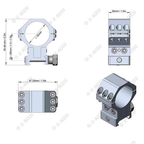 Dwuczęściowy montaż do lunety optycznej X-ACCU 30mm Adjustable Elevation Picatinny Rings x1