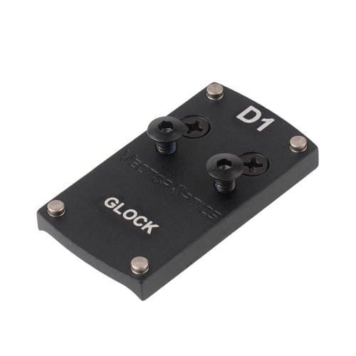 Płytka montażowa pod kolimator wykonana w całości z aluminium. Mocowana w miejscu fabrycznej szczerbinki na pistoletach Glock.