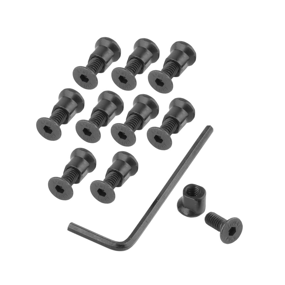 Zestaw 10 stalowych śrub i nakrętek w standardzie KeyMod. Dołączono klucz imbusowy.