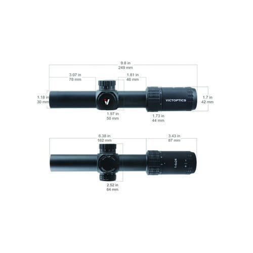 Wysokiej jakości luneta celownicza o zmiennym powiększeniu 1-6x24 wykonana z wytrzymałego aluminium lotniczego. Luneta z siatką celowniczą VI-CTSIX na drugim planie SFP, wyposażoną w podświetlenie w dwóch kolorach.