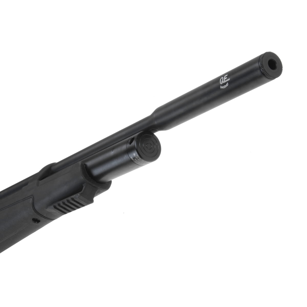 Lufa - precyzyjna gwintowana Hatsan Arms o długości 17.7" (450 mm) zakończona redukującym o -50% odgłos wystrzału integralnym tłumikiem dźwięku QE (QuietEnergy). Takie rozwiązanie zachowuje maksymalną energię wylotową śrucin, co jest utrudnione w przypadku opcjonalnego tłumika. Konstruktorzy z firmy Hatsan zadbali o rozwiązanie tego problemu, co dodatkowo poprawiło wyważenie wiatrówki. Zwężenie u wylotu lufy zwane czokiem poprawia skupienie. Jakość wykonania lufy jest jednym z najważniejszych elementów każdej broni / wiatrówki. Wpływa na celność karabinu, zwłaszcza podczas strzelania na dużych dystansach.