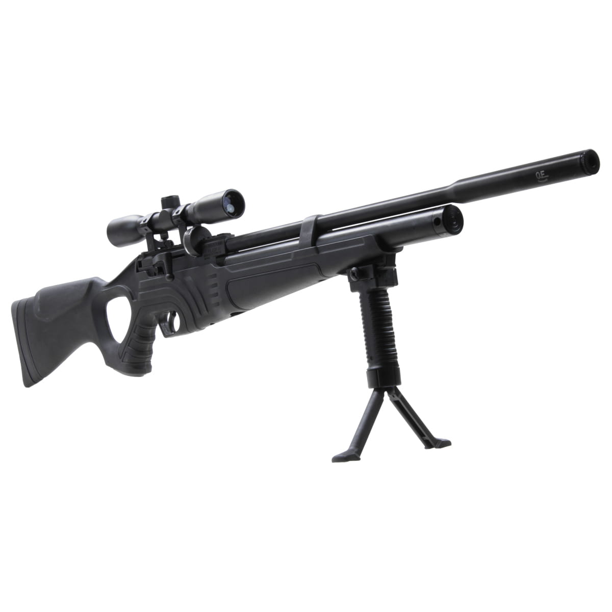 FLASH 101 QE SET, nowoczesna wielostrzałowa wiatrówka PCP (Pre-Charged Pneumatic) firmy Hatsan Arms ze zintegrowanym tłumikiem w doskonałej cenie! Teraz w zestawie z oryginalną pompką Hatsan Hand Pump, celownikiem optycznym Optima 3-9x32 i montażem, dwoma magazynkami, uchwytem przednim na szynę z bipodem, nylonowym pokrowcem oraz paczką śrutu Hatsan. Zestaw umożliwia zakup wiatrówki wraz z niezbędnymi akcesoriami strzeleckimi w bardzo atrakcyjnej cenie.
