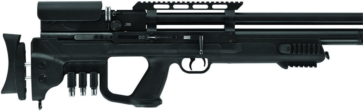 GLADIUS, mocna wielostrzałowa wiatrówka PCP typu bullpup wyposażona w 6-stopniową regulacją mocy. Dostępna w kalibrach: .177 (4.5 mm), .22 (5.5 mm), .25 (6.35 mm).
