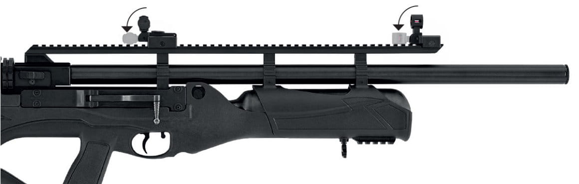 Szyna montażowa - wersja wiatrówki z podwójną długą szyną montażową 11 mm / 22 mm. Szyna zgodna ze standardem MIL-STD 1913 (picatinny lub Weaver) pozwala na montaż dowolnego celownika optycznego. Dodatkowa szyna picatinny na spodzie chwytu osady.