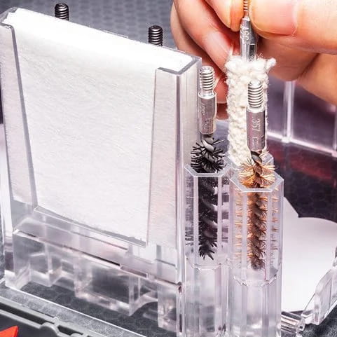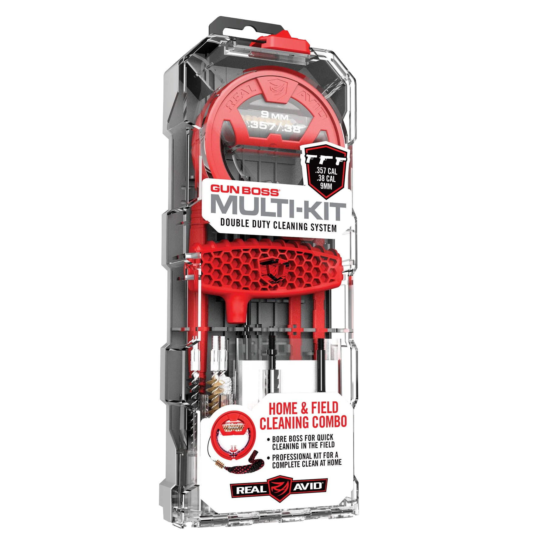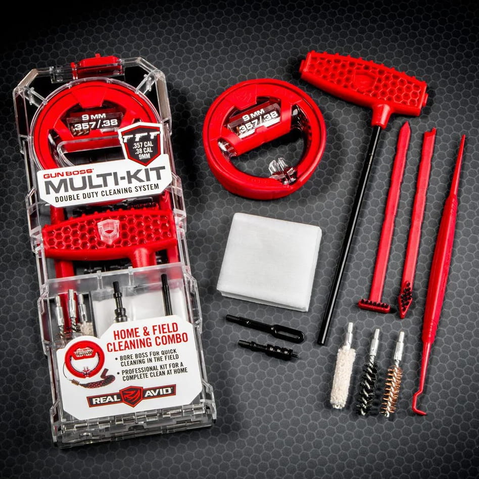 Zestaw do czyszczenia broni Real Avid Gun Boss Multi-Kit to kompleksowy przegląd narzędzi pozwalających na pozbycie się zanieczyszczeń nawet z najmniejszych zakamarków mechanizmu. Połączenie wieloczęściowego sznura do czyszczenia lufy Bore Boss wyciora, szczotek, skrobaków oraz haczyków zagwarantuje nam maksymalną funkcjonalność, oraz wszechstronność. Całość zapakowana została w wygodne pudełko, pozwalające na łatwą organizację i przechowywanie akcesoriów. Wersja dostosowana do pracy z pistoletami w kalibrze .357 / .38 / 9 mm.
