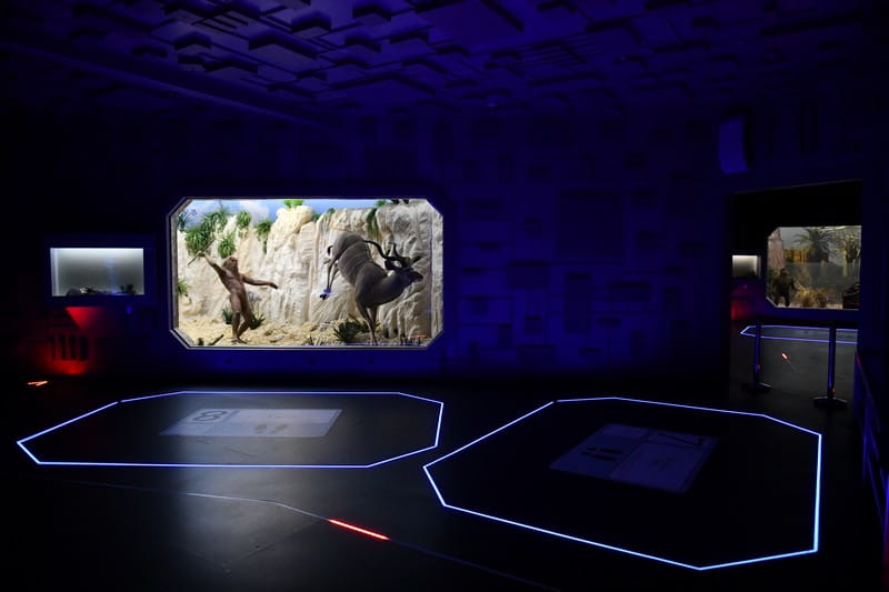 Jakie czekają na nas wystawy? Zajmijmy się wystawą pt.: Okna Prehistorii”. zwiedzana jest pieszo, po promie kosmicznym. Jest to wielkie widowisko multimedialne, pełne sygnalizacji świetlnych i przewodników cyfrowych. Okna ewolucji zostały zaprojektowane na wzór drzewa filogenetycznym człowieka. W oknach ewolucji możemy znaleźć takie tematy jak: zagłada wielkich dinozaurów, początki dwunożności, zejście z drzew, okno prehistorii, pierwsza rodzina, zabójcy i ofiary, pierwsza miłość itd. Następne jest “Lustro ewolucji”. Posługując się aplikacją możemy wcielić się w postać przodka. Po wyświetleniu planszy do zabawy, używamy aplikacji i możemy zagrać dzięki użyciu planszy. Użytkownik będzie mógł wybrać jedną z interesujących go epok i zobaczyć postacie przodków. Postać zacznie naśladować nasze ruchy w lustrze. Następnie jest ekspozycja “Rozwój Noża”. Wystawa poświęcona jest ewolucji narzędzi, od tych najbardziej prymitywnych do wspólnych. Te najprymitywniejsze tworzone przez mały zmiennokształtne i małpy człekokształtne. Później znajdziemy narzędzie krzemienne, te podstawowe i już bardziej skomplikowane. Znajdziemy tam przedmioty takie jak: igła, szydło, żelazko. Ukaże nam się również wykorzystanie krzemu przez człowieka, dlatego kolejnym elementem wystawy jest zwykły smartfon.